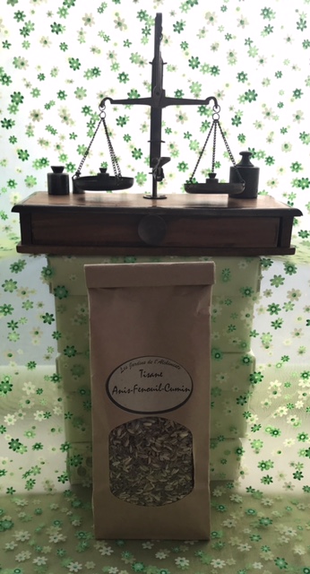 Composition : Anisi fructus 70g, Carvi fructus 70g, Foeniculi fructus 70g.