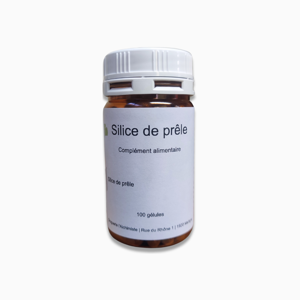 Composition: Poudre de partie aérienne de prêle BIO (Equisetum arvense, origine: Europe); gélule végétale:hydroxypropylméthylcellulose.