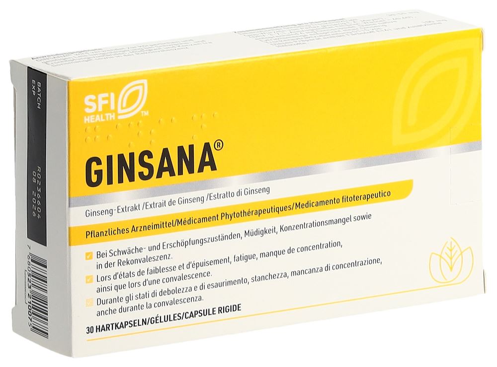 Ginsana augmente les performances physiques et intellectuelles en cas d'états de faiblesse et d'épuisement, de fatigue et de manque de concentration, lors de convalescence. Le produit Ginsana fournit une énergie naturelle durable en cas de fatigue, de faiblesse ou d'épuisement.