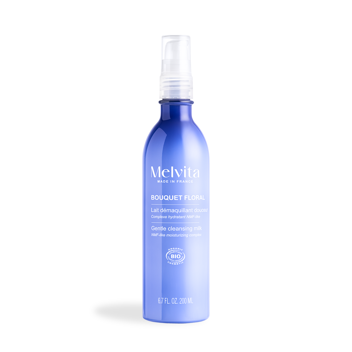 Ce lait à la texture onctueuse démaquille et nettoie la peau en douceur. Utilisé en premère étape du nettoyage, il élimine les impuretés et maquillage. Enrichi d’un Complexe Hydratant Naturel NMF-like et en Eaux Florales de Rose et de Fleur d’Oranger, il hydrate et apaise les peaux sèches et réactives.